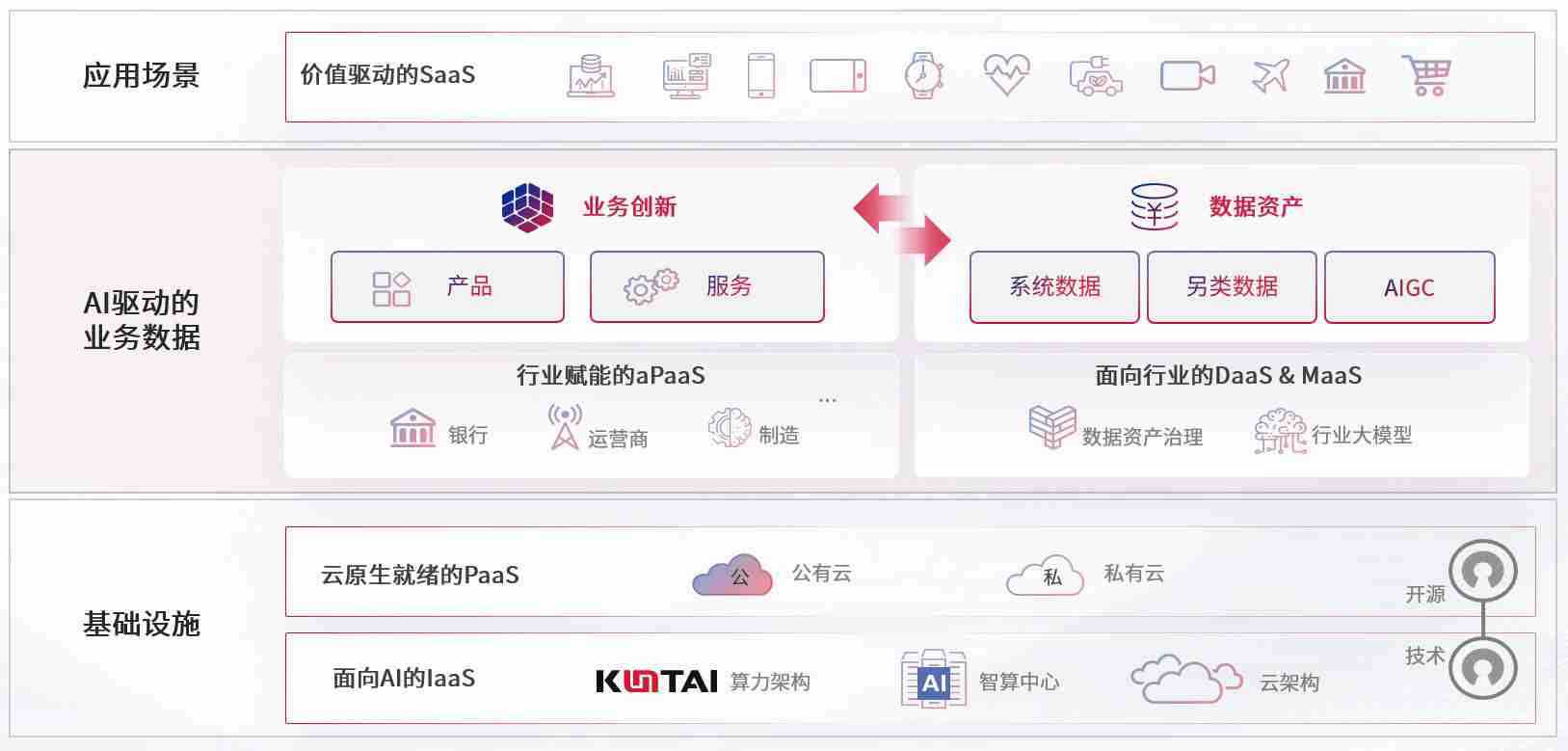 数字时代,,,围绕企业数字化转型的关键要素,,,,KDPAY数码开创性的提出数云融合战略和技术体系框架,,,,着力在云原生、、、数字原生、、、AI原生和信创产业上架构产品和服务能力,,为处在不同数字化转型阶段的快消零售、、、、汽车、、、金融、、、、医疗、、政企、、、、教育、、、运营商等行业客户提供泛在的敏捷IT能力和融合的数据驱动能力,,,,构建跨界融合创新的数字业务场景和新业务模式,,,,助力企业级客户建立面向未来的核心能力和竞争优势,,,全面推动社会的数字化、、、、智能化转型升级。。